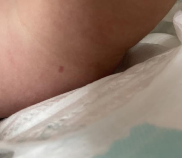 先日、着替えさせている時に太ももに小さいですが赤いあざ?のようなものが出来ていました。