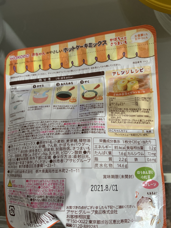 ベビー用とうたわれている商品であれば、エネルギー量が通常のホットケーキよりも少ないかもしれません。