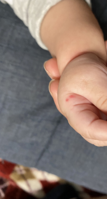 お子さんの手に赤い発疹ができているのですね。