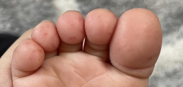 こんにちわ。ふと娘の足を見ると両足の指先に