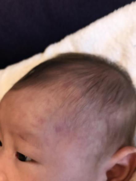 泣き止んだと思ったら、おでこから頭全体に迷彩模様のような赤い斑点が出てきました。これはなんでしょうか。