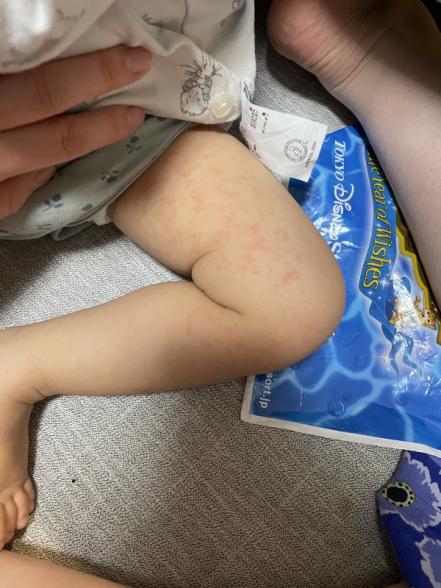 腰の辺りの発疹は割と初めから出てきていたにもかかわらずまだ小さい発疹のまま残っています。オムツが当たるせいでしょうか?