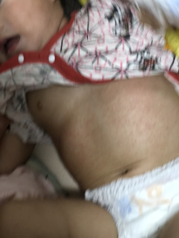 お子さんのお体に赤い発疹が出ているのですね。