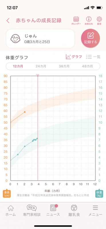 そのため、1日あたりの増加量と言うよりは、母子手帳の成長曲線のカーブに沿った様に増えていっていることをチェックする必要があります。