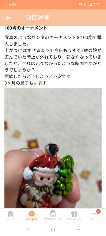 写真のようなサンタのオーナメントを100均で購入しました。