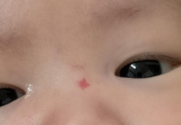 生後2週間くらいに、突然眉間の間にうっすら痣のようなものができました。