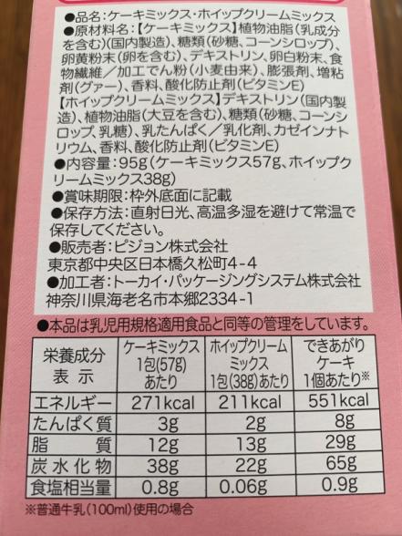 ケーキミックス半分のエネルギー⇒ 276kcal