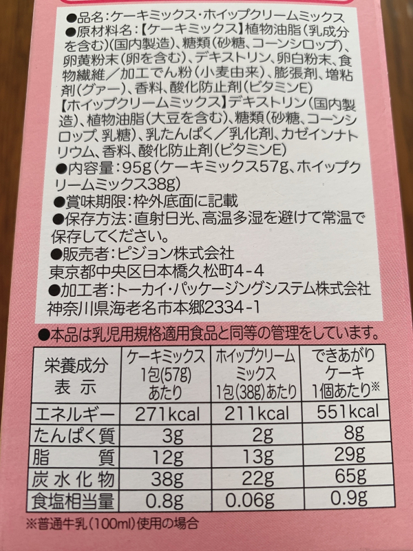 ①成分表を見させていただきましたがケーキは1個分すべてあげる予定ですか?