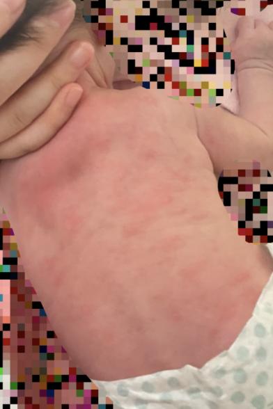 そして先程気づいたのですが、背中一面に乳児湿疹(周りが赤く、真ん中が白いもの)がたくさんできていました。