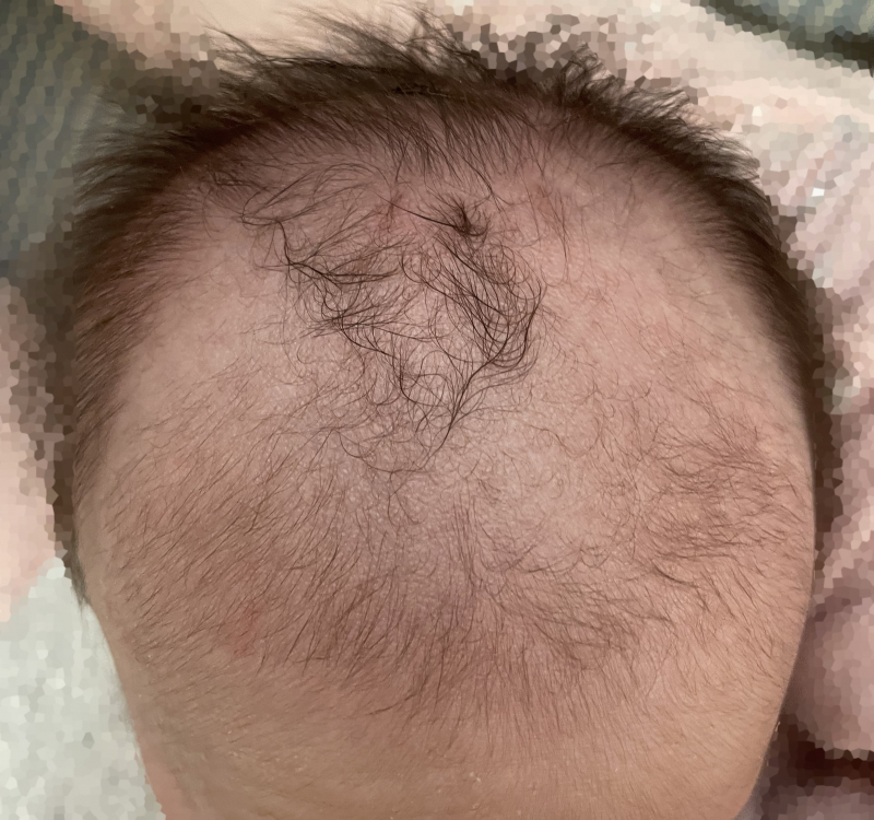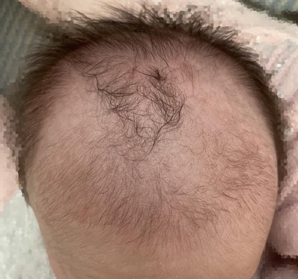 生後3週目あたりから赤ちゃんの抜け毛が目立ち、気になって1週間弱ですが、頭の半分くらいが抜けてしまっています。