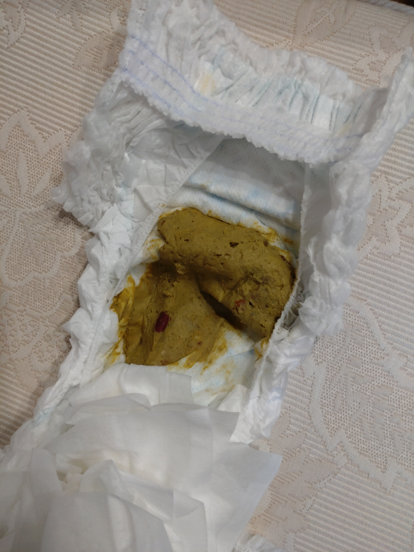 この一週間は風邪を引いたり、風邪から来る下痢はあり小児科受診もしましたが、今更先生に質問しなかったうんちの色が気になりはじめました…元気に機嫌よくはしていますが色は特に問題ないでしょうか?心当たりとしては、さつまいもをよく食べているかなぁというくらいです。