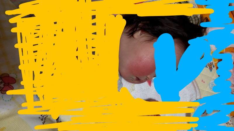 お子さんのほっぺが赤いのですね。