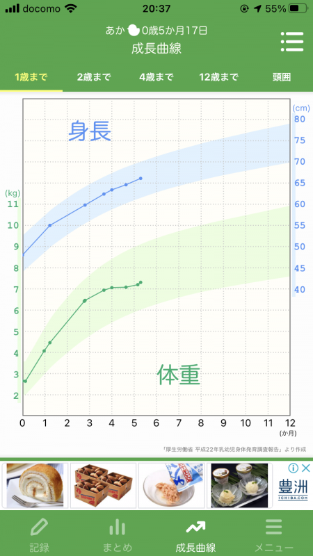 12/21に測った際には身長66.1センチ、体重7.31キロでした。その後も自宅で体重を測っていますが7.2キロに減っています。離乳食は5ヶ月になってすぐ始めました。