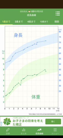 成長曲線に沿って、カーブしていますし、身長とのバランスもよいですね。