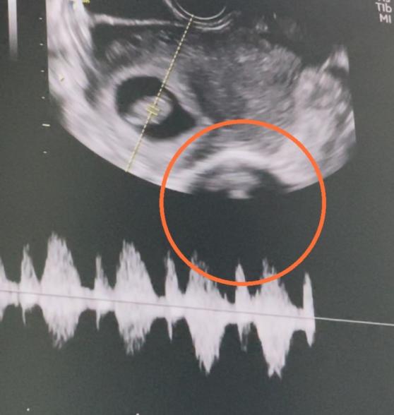 左上に映っている子の心臓を 確認すると「心臓動いてますね。元気です」と言われ即診察が終わりました。