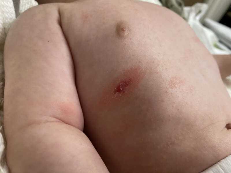 それと、お腹にポツポツとした湿疹?が多くなってきたのですが、これは乳児湿疹と同じ扱いのものでしょうか?