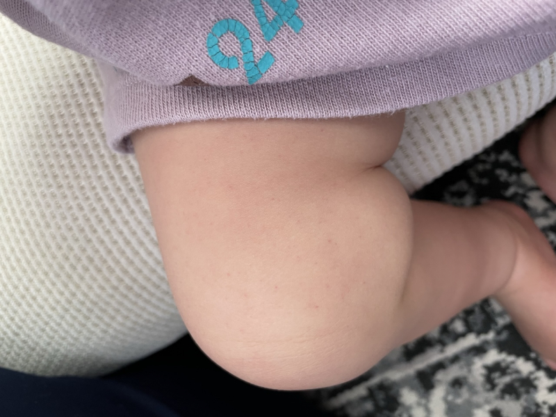 抱っこ紐に入れてあげるときの体勢で圧がかかって、内出血をしていたのかなと思いました。