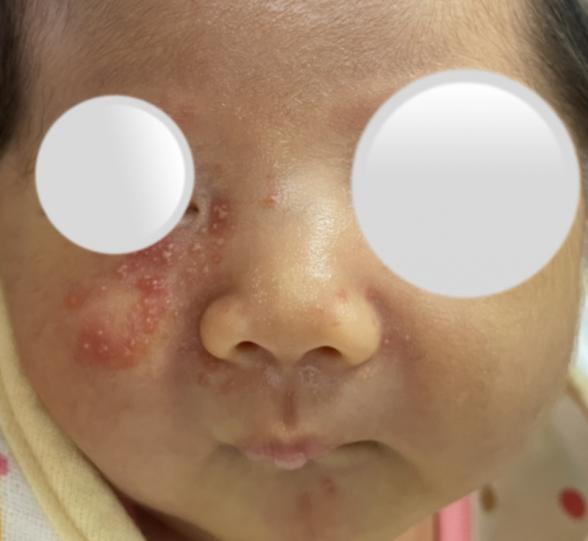 生後10日から顔の半分に湿疹が出来てきて日に日に増えてきている気がします。何なのでしょうか?