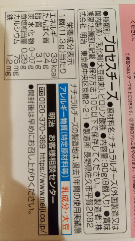 チーズとシリアルの成分表示を添付させていただきますので、ご確認をお願い致します。