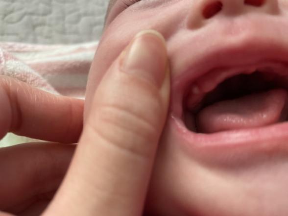 3ヶ月の娘の歯茎に歯のようなものがあるのを見つけました。上の歯茎の右側の犬歯が生えるくらいの場所にあり、白く盛り上がってます。触ってみると硬いので、おそらく歯ではないかと思いますが、生える順番がずいぶん違うし、まわりでこの部分から生えてきたという子は聞いたことがないので何か別の病気ではないかと不安です。