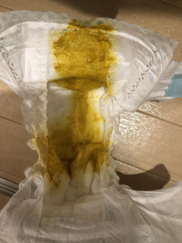 普段の排便回数は2~4回で、最近は色が茶色に濃くなり粘性が強い感じでした。吐き戻しは産まれてから数える程度しかありません。