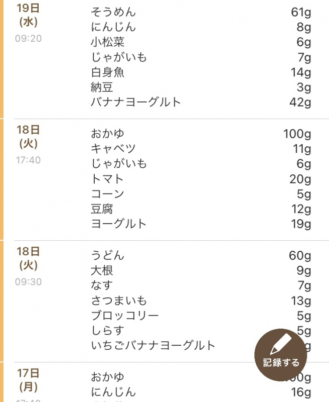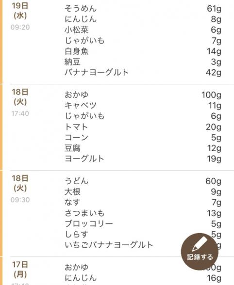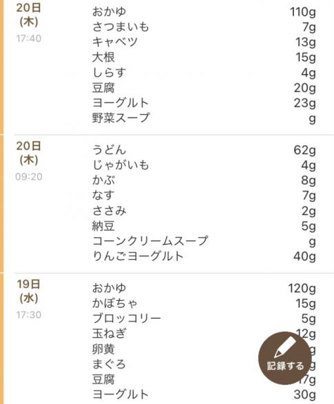 毎食、おかゆやうどんなどの主食を80〜110gと野菜などを完食していて、今のところ嫌いそうなものやアレルギーはありません。今は授乳は1日5回です。