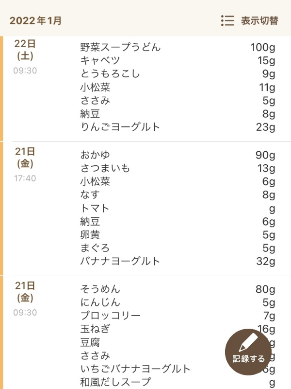 2.中期の時期におかゆを50~80gほど食べられるようになった。(※食べムラが出てくる時期なので、量はあくまで目安です。)