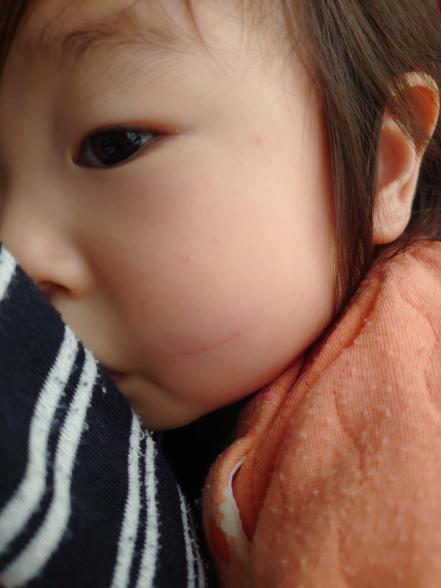 少ししたら泣きやんだのですが、アザの他に横一本線で細く内出血していて💦