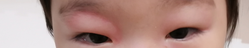 昨日、入浴後から左まぶたをこすって腫れぼったくなってしまい、夜間もグズグズしてあまり眠れず、起床したら右まぶた、お腹周り、首元も湿疹が出来ていて、本人も痒がってすぐにかいてしまい、休日診療で内科を受診してきました。