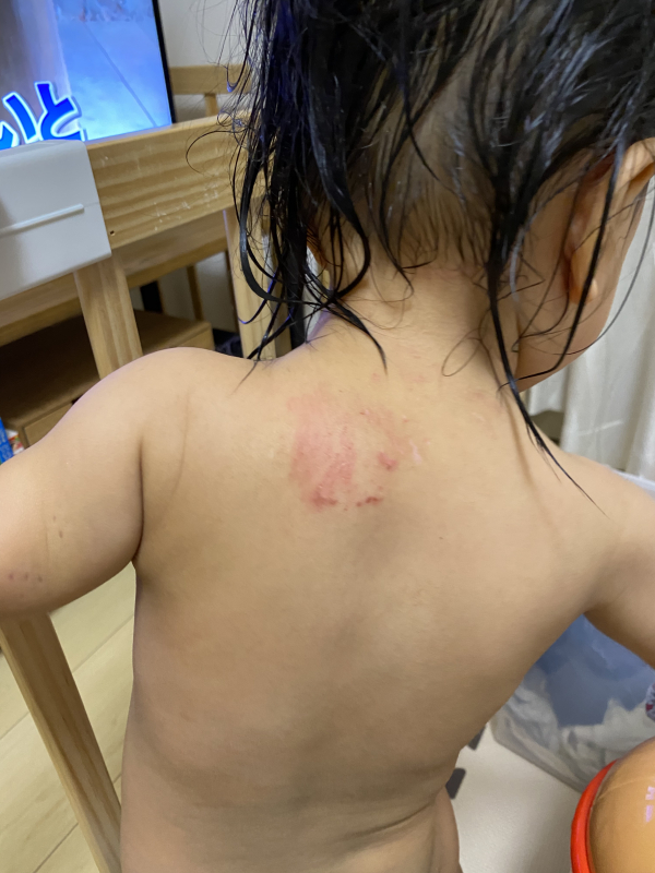 1歳0ヶ月の娘が背中をかきむしって傷がどんどん酷くなってきてしまっています。爪をこまめに切ったり、傷をワセリンで保湿していますが、何か改善するいい処置方法はありますか?傷をひっかかないように小児用の絆創膏を貼ってもいいのでしょうか?