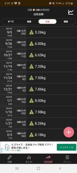体重のグラフの画像を添付します