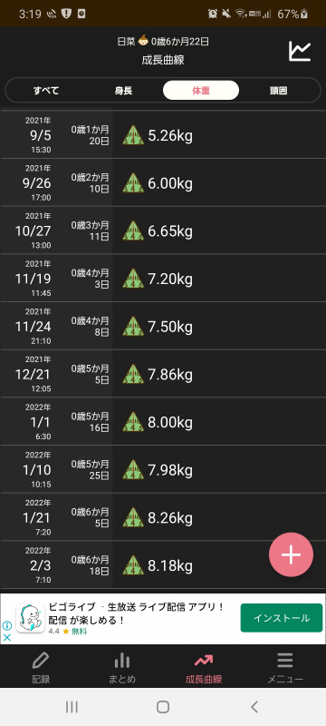 よく吐き戻していたものの、生まれてから平均よりも体重の増え方がずっとよかったので