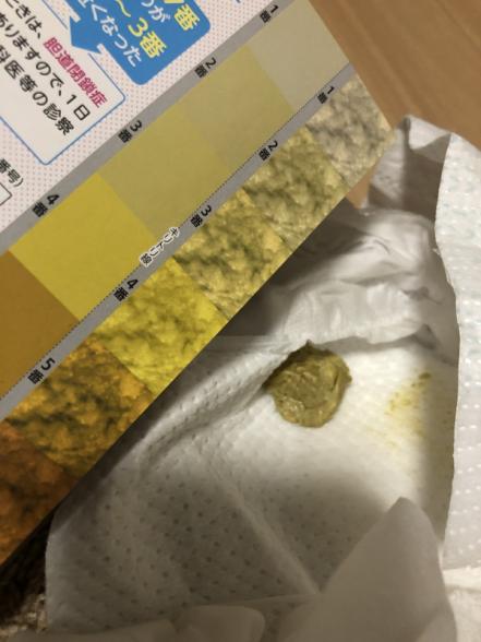 4番よりは緑がかっていて、黄土色のようなうんちなのですが…