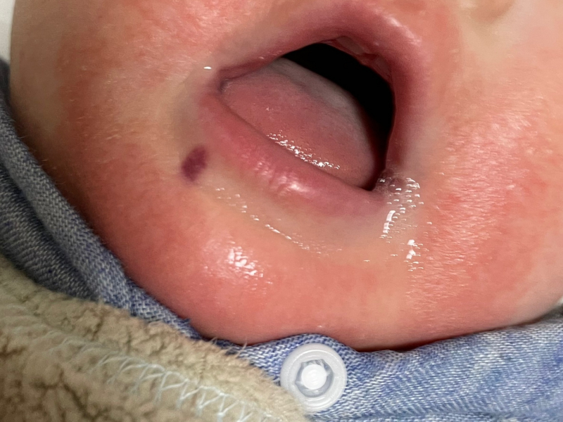 7ヶ月の子供の口の下が紫色になっています(写真参照)