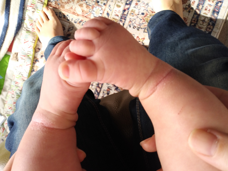 足首の関節が乾燥してガサガサになって赤みがでていますね。