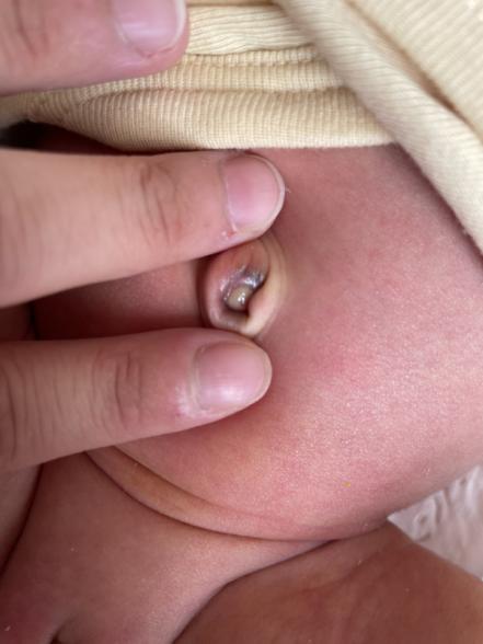 生後11日目の娘を育てています。先日へその緒が取れたのですが、おへそに写真のような白い塊があります。これが通常なのでしょうか?それとも臍肉芽腫というものでしょうか?出血はないですが、まだ少しだけジュクジュクしているので産院でもらった消毒を綿棒でしています。これは病院で取ってもらった方がいいのでしょうか?それともこれがおへその通常ですか?もし取ってもらうのでかれば、1ヶ月検診が3/19にあります。それまで様子を見ながら待ってもいいものなのか、それより早めに見てもらった方がいいのでしょうか?また、みてもらうとしたら産んだ産院ですか?小児科ですか?ご回答よろしくお願いします!