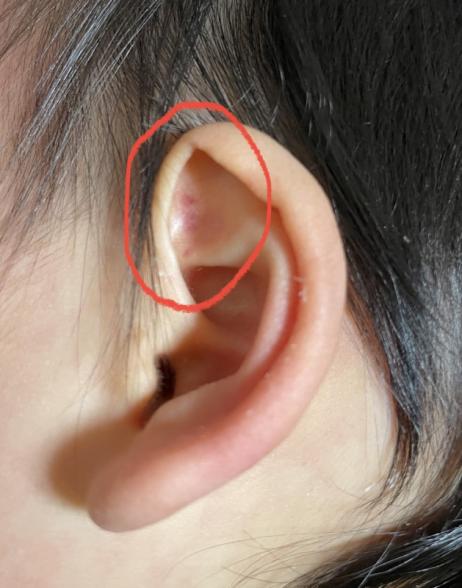 2日ほど前から、1歳の娘の耳の内側に赤い斑点がいくつかあるのを見つけました。
