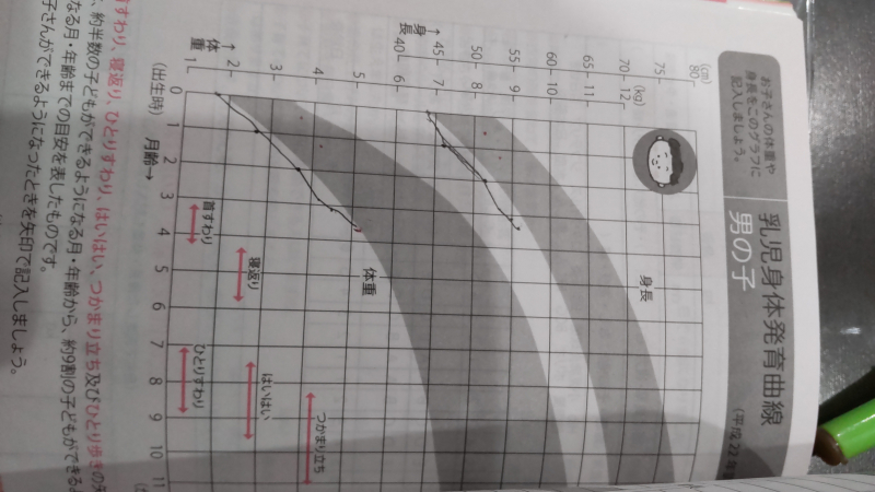 母子手帳の成長曲線を写真添付してください。