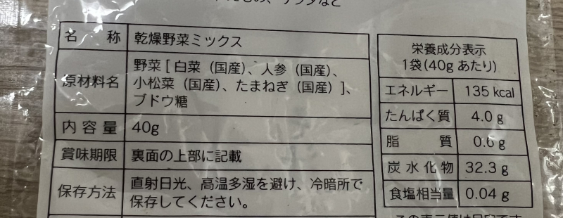 乾燥野菜を使っていました。