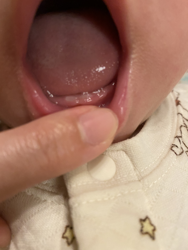 下の前歯2本がうっすら生えてきました。
