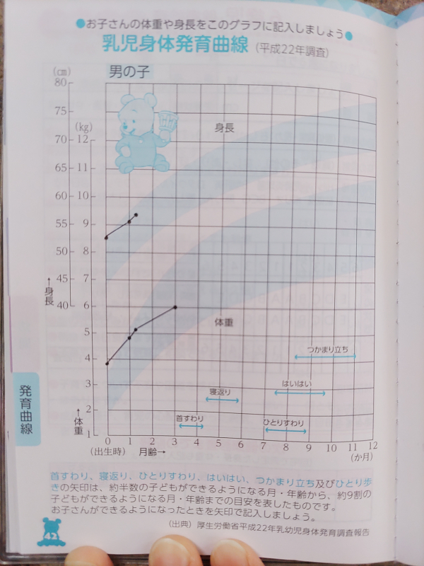 母子手帳の成長曲線を写真を添付します。