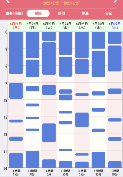 まず、睡眠に関してですが、リズムも拝見すると、夜間に長時間眠るようになってきていますね。