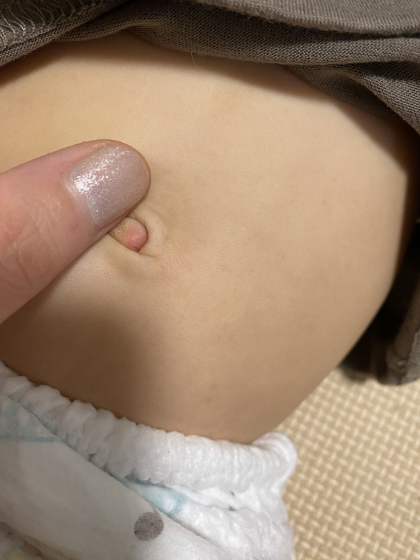 今の程度であれば、いわゆる臍炎などの感染を強く疑うわけではないですが、赤みがありますから、かかりつけの小児科でよいので受診なされてご相談なさるのがよいです。
