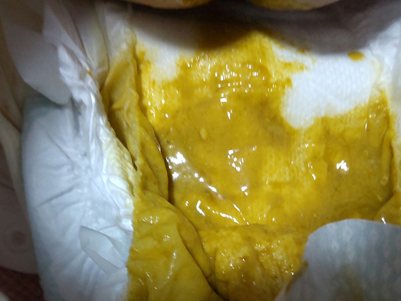 5日くらい前からうんちが緩めで、回数は日によるのですが出ていない日もありました。はじめは母乳が多くなったからかなと思っていたのですが、昨日は1日4回も緩めうんちがでて、具合が悪いのかと心配になってきました。この緩さは下痢でしょうか。