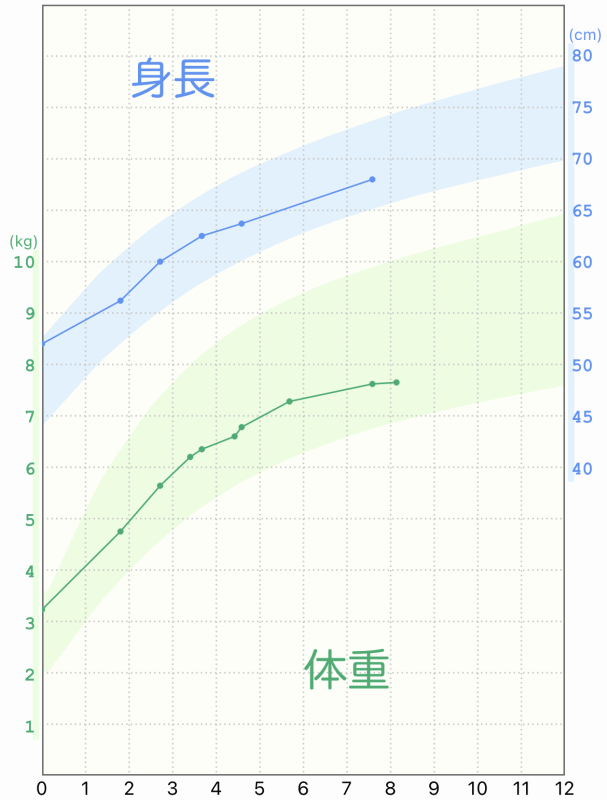 5ヶ月頃からずり這いを始めよく動くようになり、体重もあまり増えなくなっております。(画像添付します)