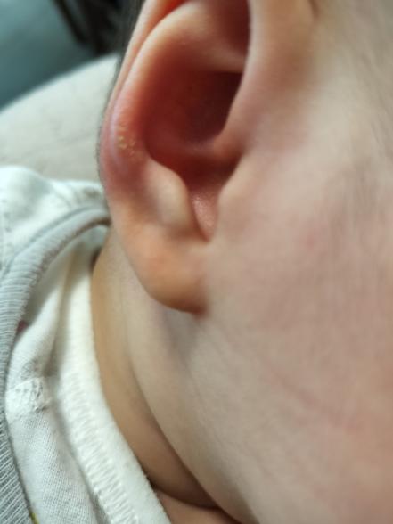 生後3ヶ月、耳のフチが腫れていることに気づきました。