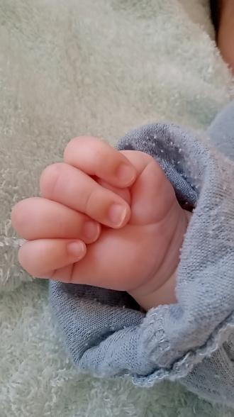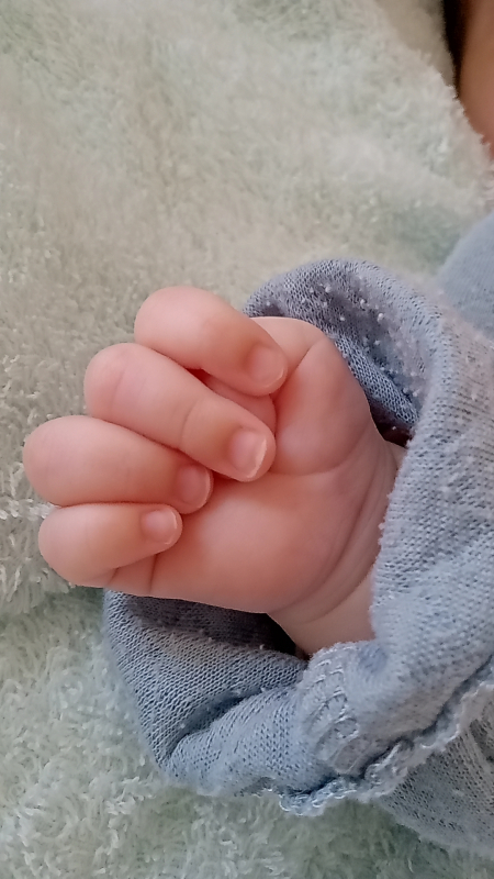 色調の変化としては爪の先から順に白→肌色(茶色)→ピンクという感じです。写真では中指が見やすいかと思います。手の指5本とも同じような感じです。