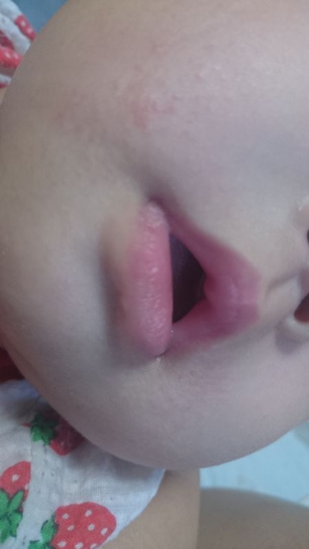 お子さんのお口の周りに湿疹が出ていますね。