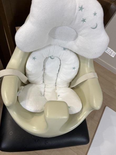 (バンボみたいな形のを大人の椅子にくくりつけられるやつ)を使って食べさせているのですが、