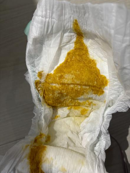 本日お風呂に入る時におむつを開けたらかなり水分多めでびっくりしました。ワンオペお風呂だったので写真をそのとき撮ることができずそのままお風呂へ入り、15分後お風呂終わりで写真撮ろうと思っておむつを開けたら水分が吸収されており見た目は通常のうんちでした。(写真1枚目です)